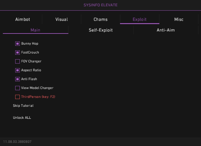• Unlock All Skins